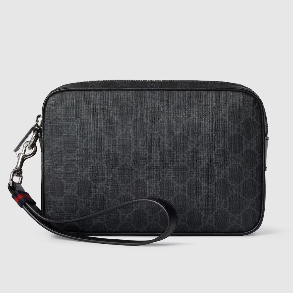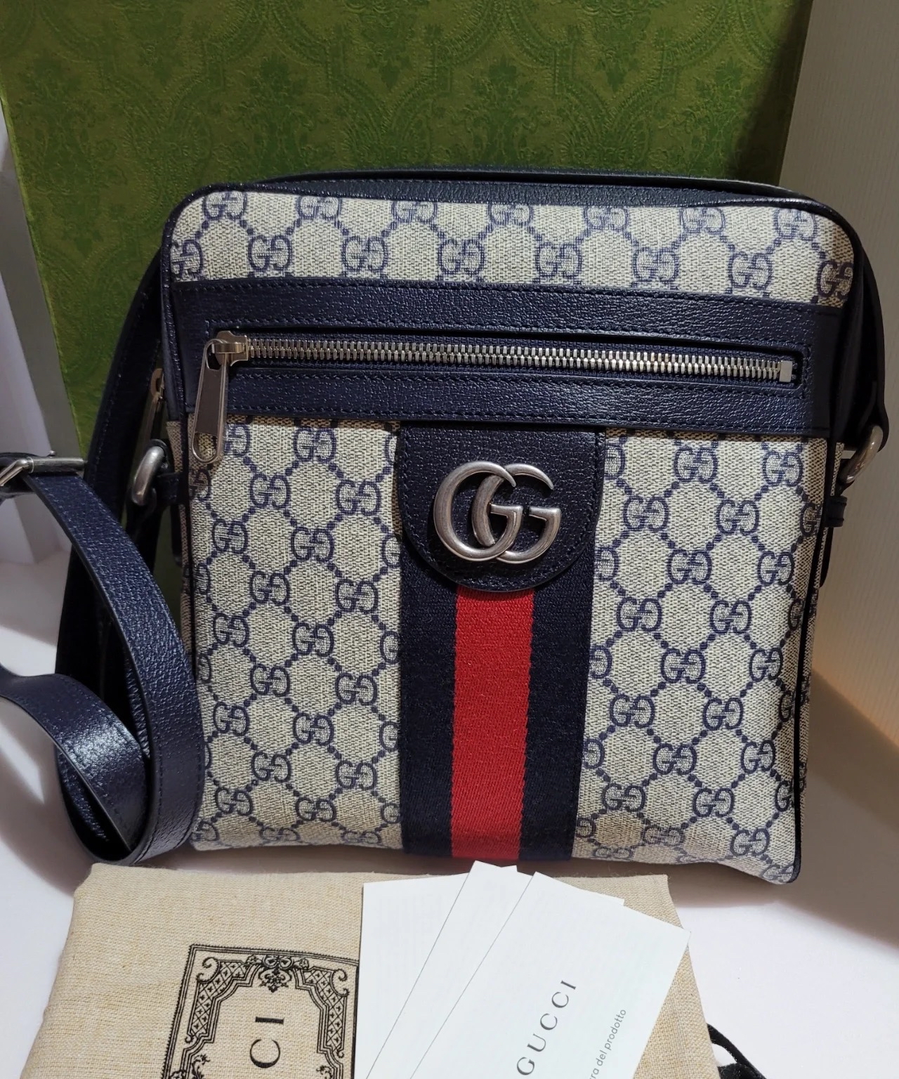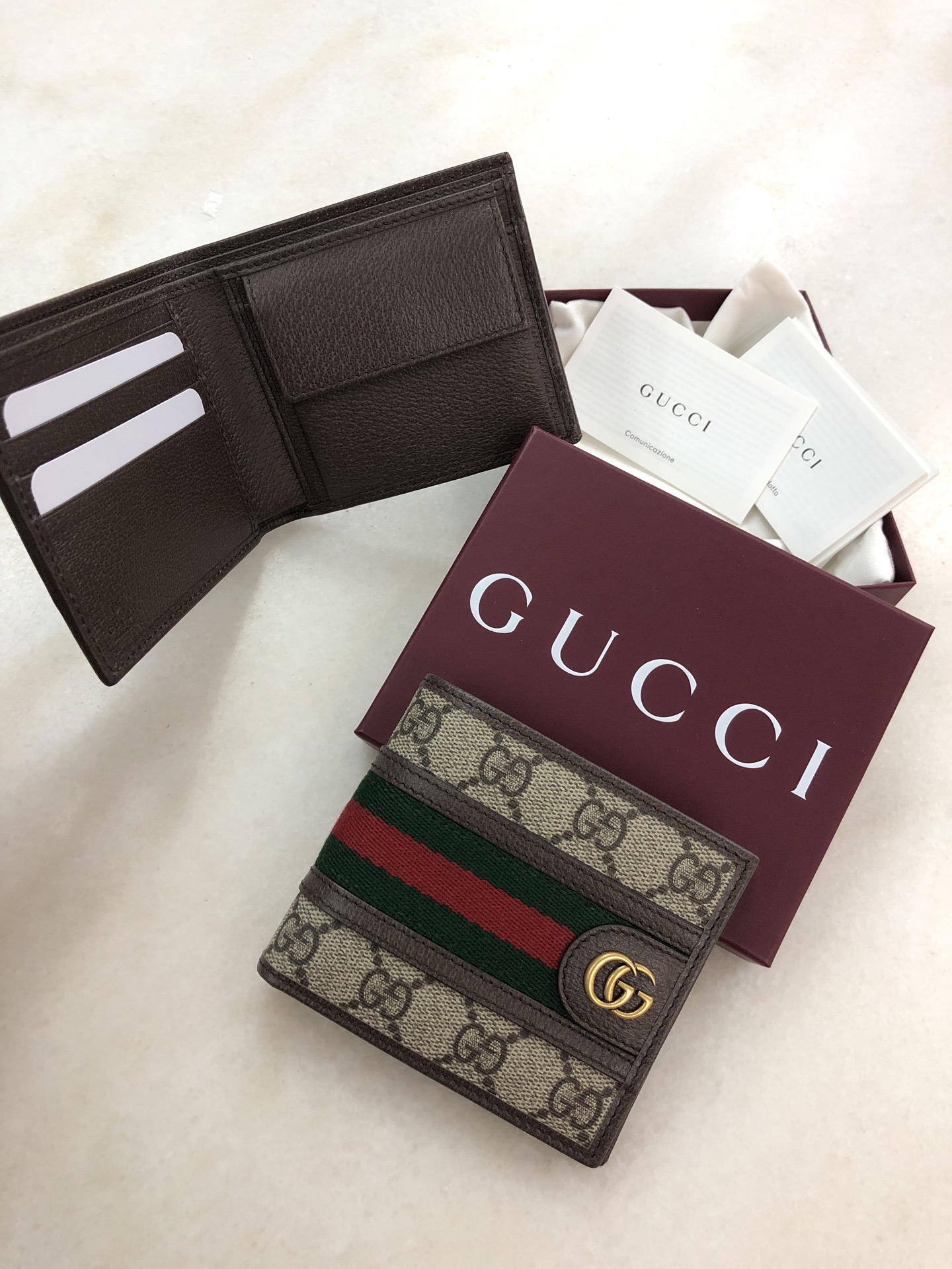 Gucci 印花帆布牛皮飾邊摺疊短夾(棕色附零錢袋)
