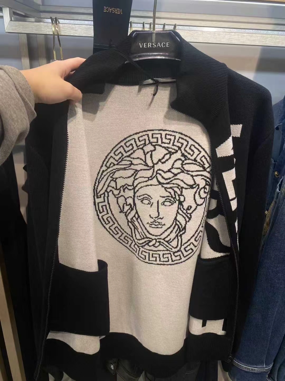 立領拉鍊美杜莎後背內襯毛衣