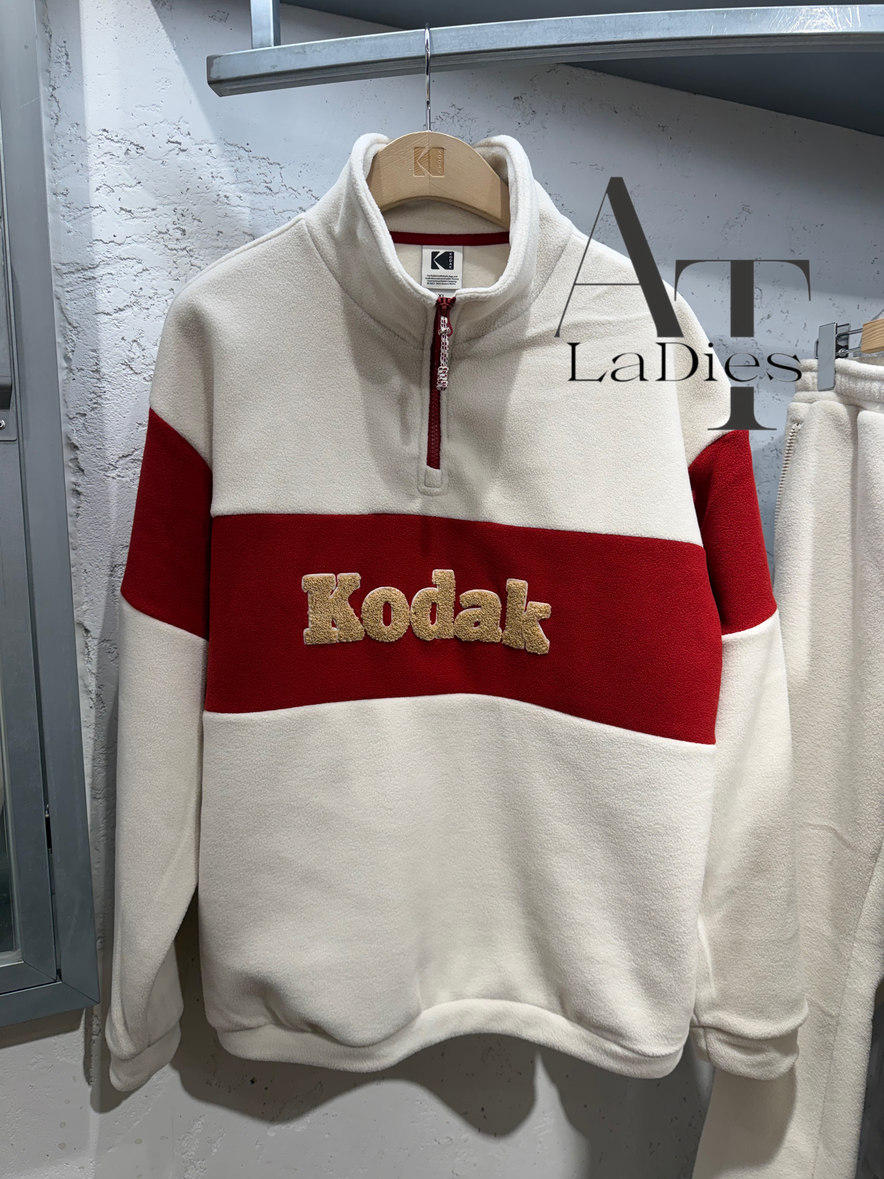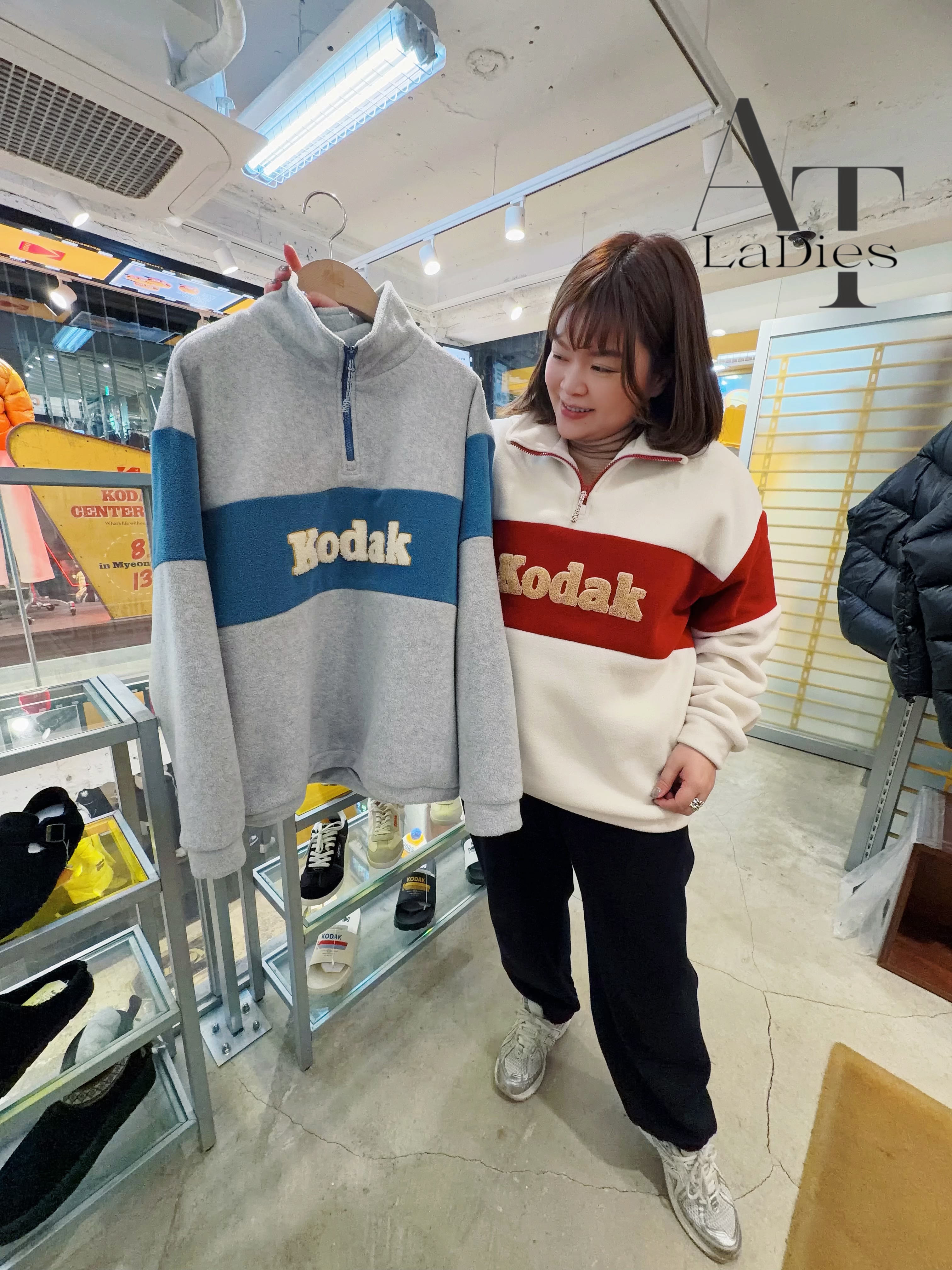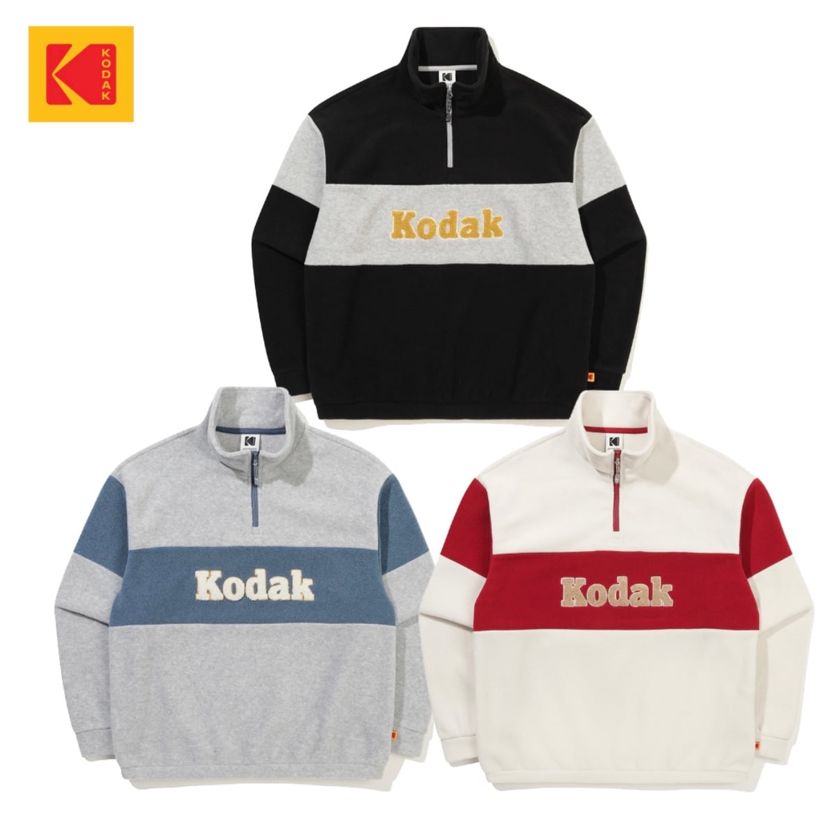韓國 KODAK柯達拼色半拉鏈立領衛衣