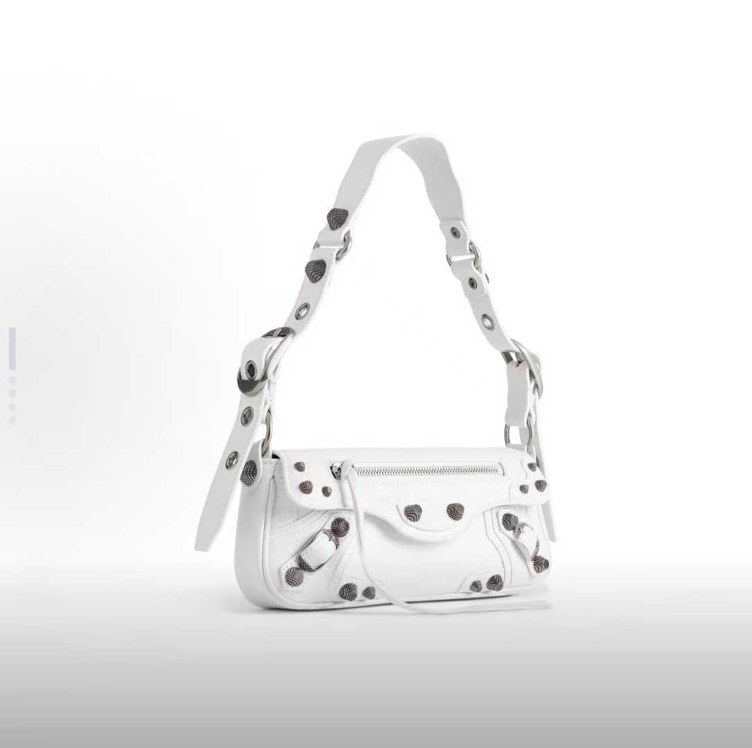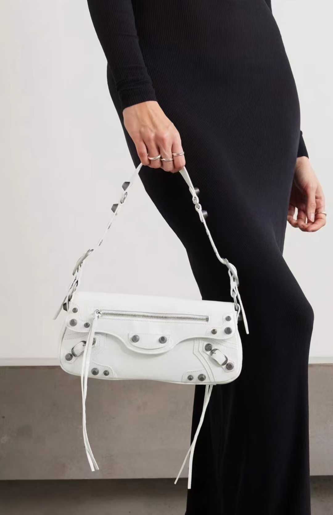 Balenciaga巴黎世家 Le Cagole 可調節肩帶鉚釘磁扣開合 細紋羊皮革 手提單肩包