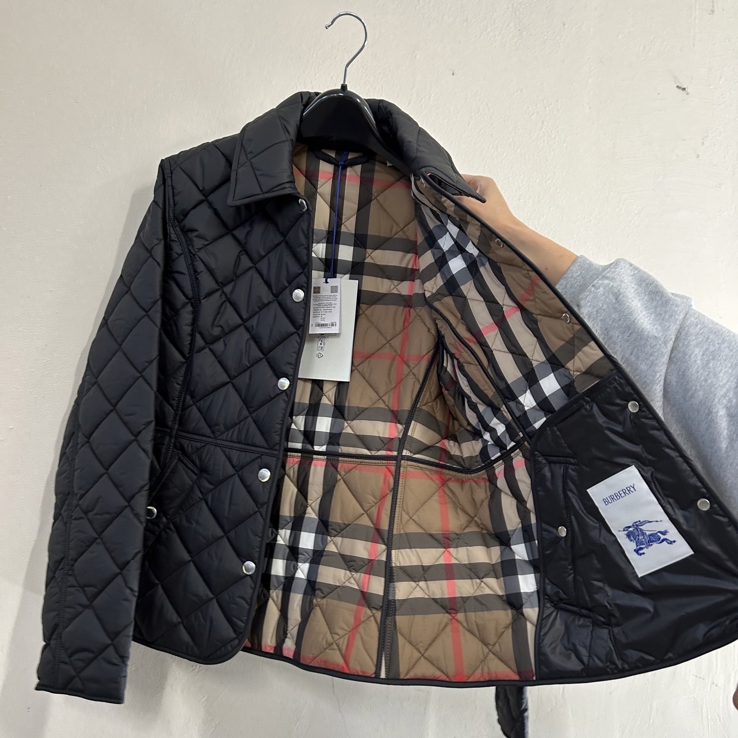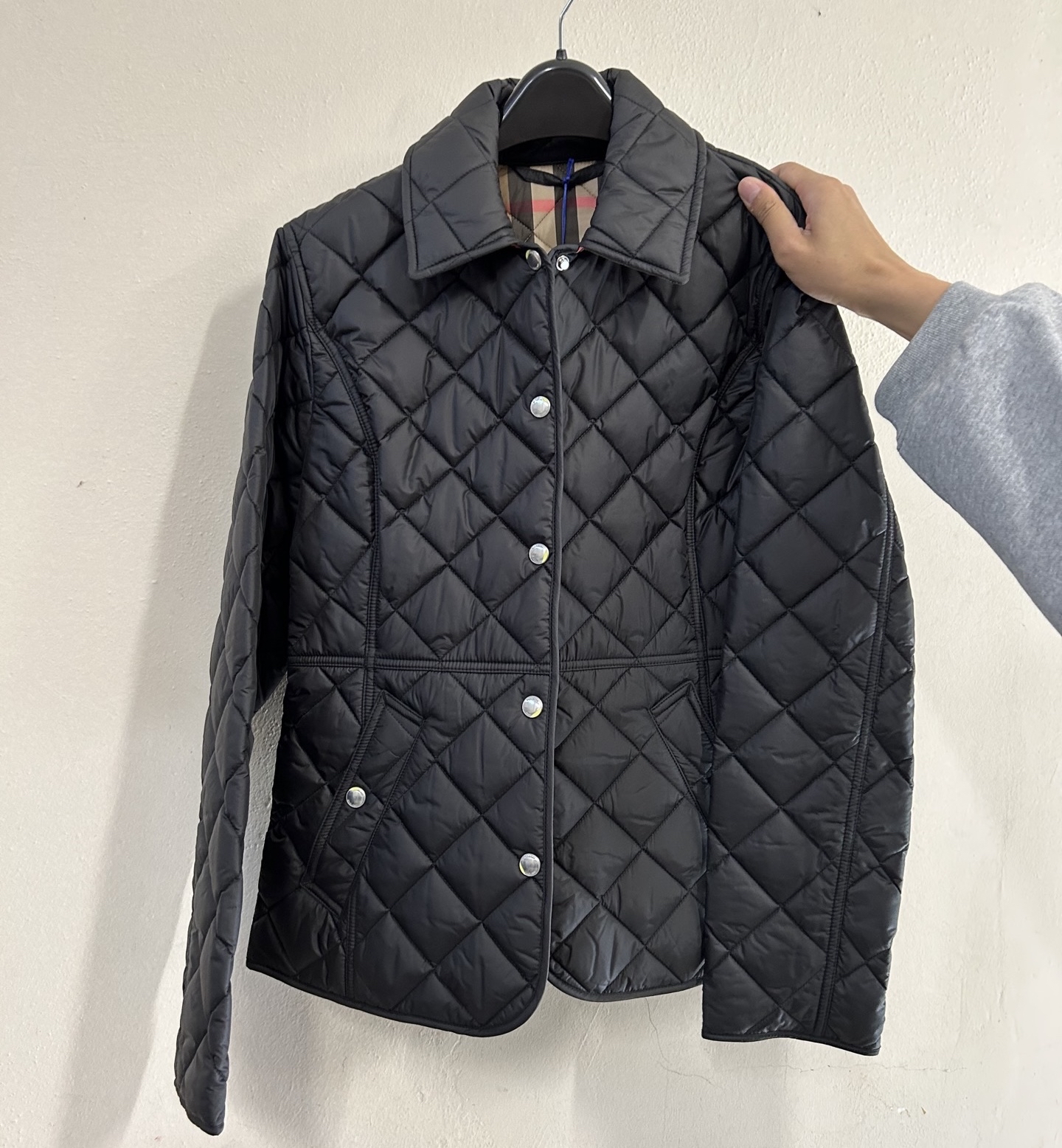 Burberry 黑色菱格紋收腰棉外套