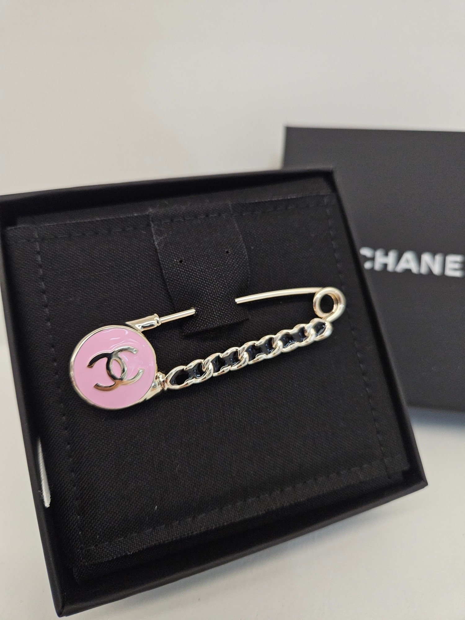 Chanel 粉色琺瑯皮穿鏈胸針