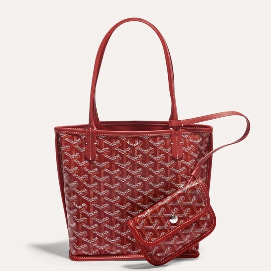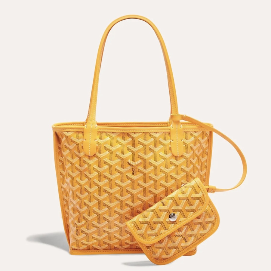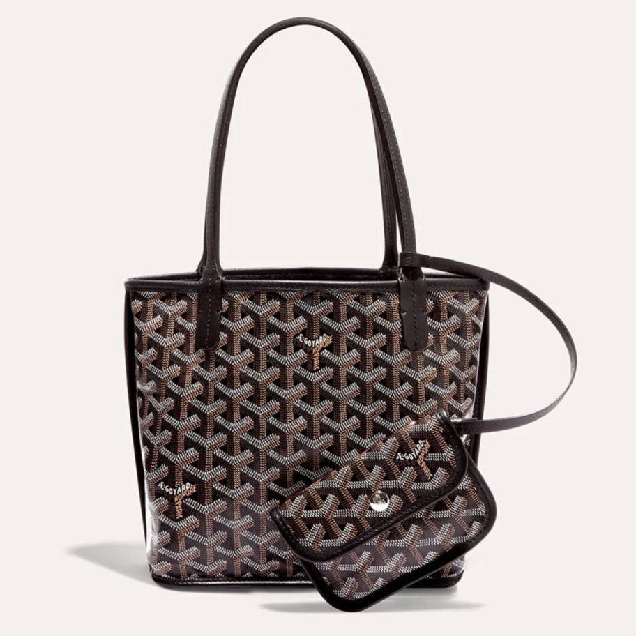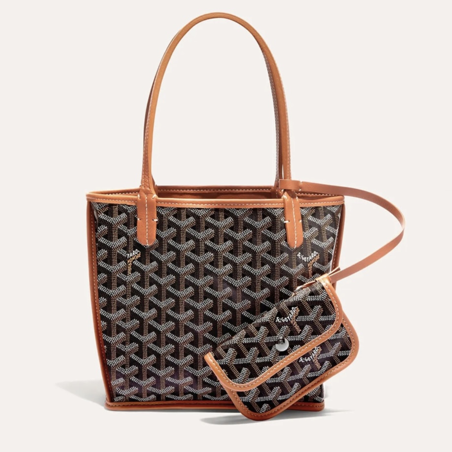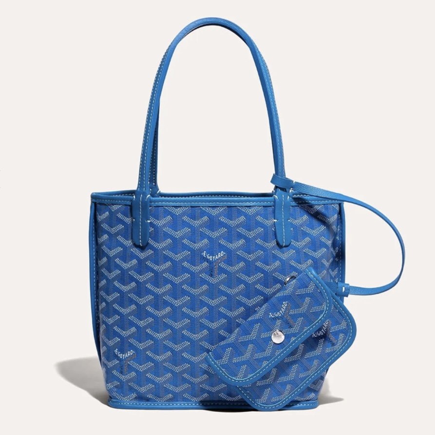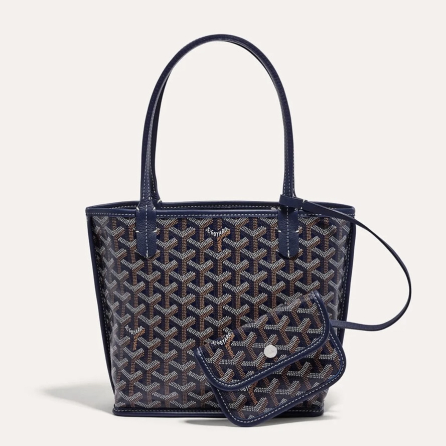Goyard Anjou Mini 手袋,是品牌標誌性 Anjou 系列的袖珍版本。以其輕盈、耐用和低調奢華的特點,Anjou Mini 完美詮釋了 Goyard 歷久彌新的設計理念。此款手袋採用雙面設計,一面為經典的 Goyardine 帆布,另一面為光滑皮革,提供兩種不同風格的選擇。無論是日常休閒搭配,還是精緻晚宴裝點,Anjou Mini 都能輕鬆駕馭,為您的造型增添一抹 Goyard 的獨特魅力。