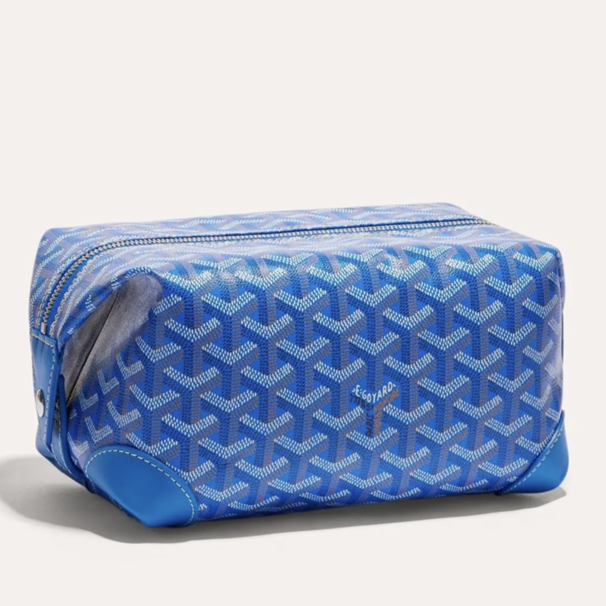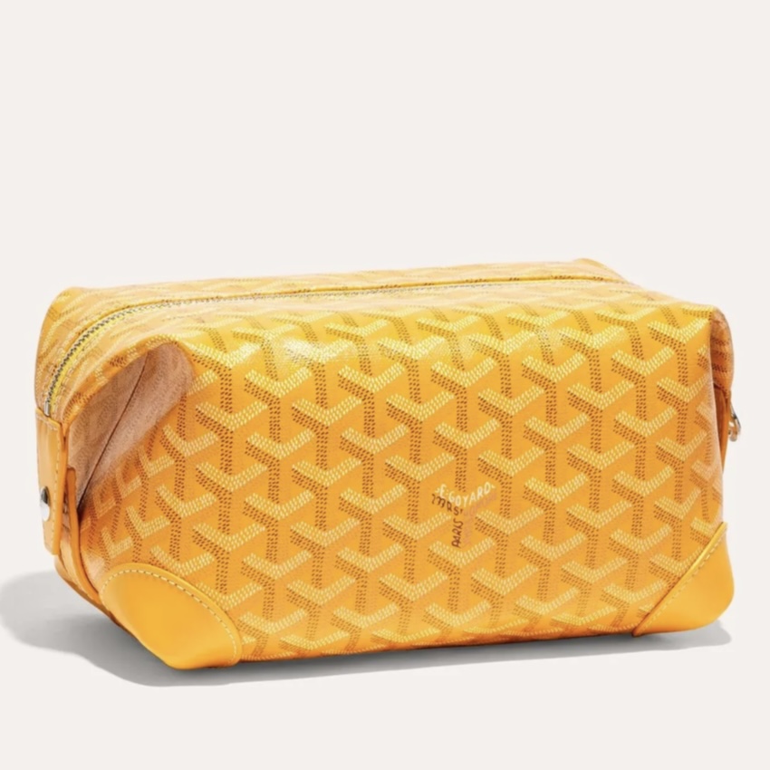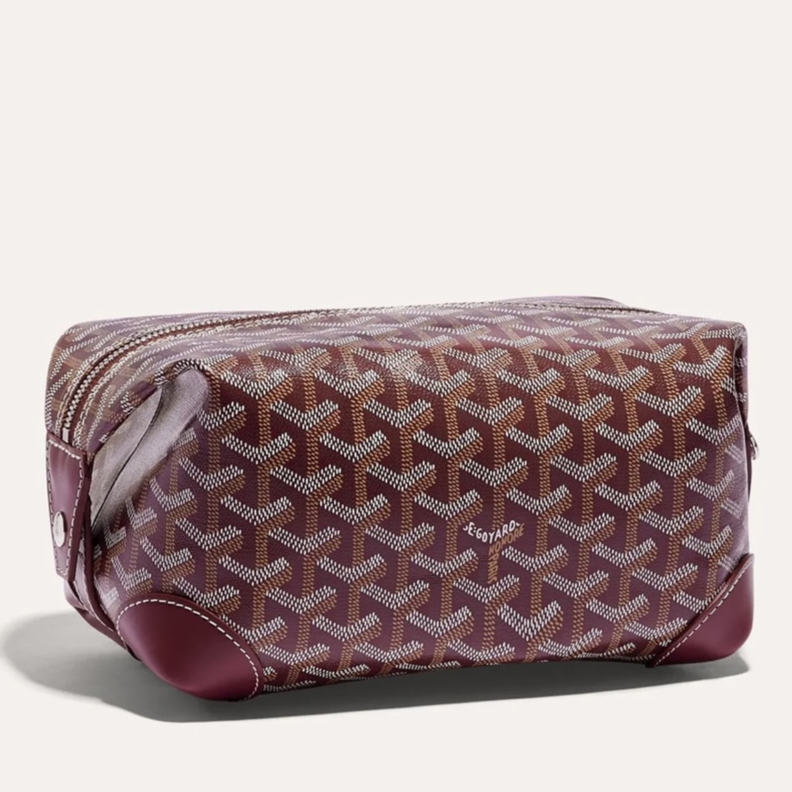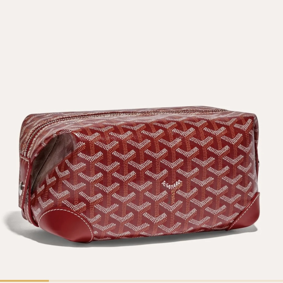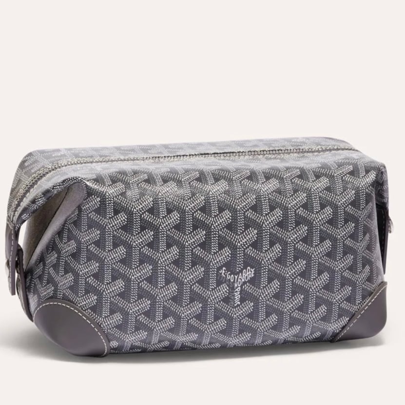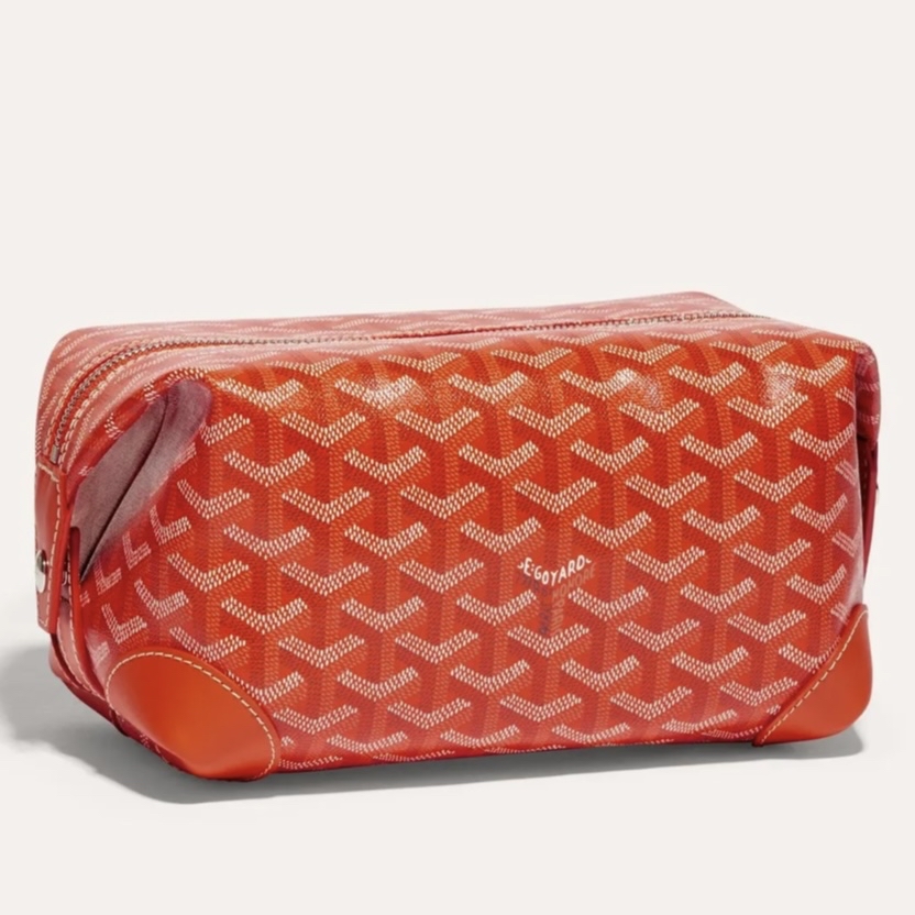 Goyard Bowling 25 Toiletry Bag: 你旅遊的最佳夥伴,時尚又實用! 想要擺脫沉悶的旅行盥洗包? Goyard Bowling 25 Toiletry Bag 絕對能讓你的旅途更加亮眼! 這款迷你版的經典 Bowling 包,不只外型可愛吸睛,更具備令人驚豔的收納能力,是時尚旅人的完美選擇。 尺寸:** 25 cm x 15 cm x 10 cm ( 實際尺寸可能略有差異 ),完美比例,兼顧容量與便攜性。