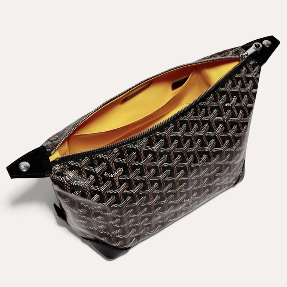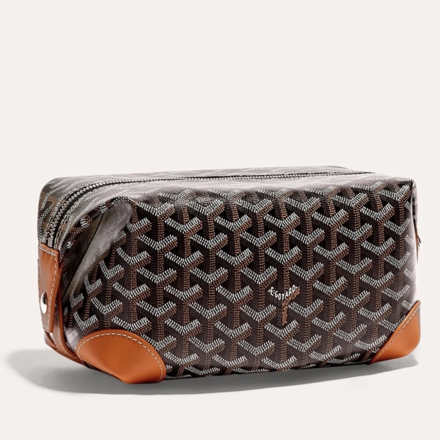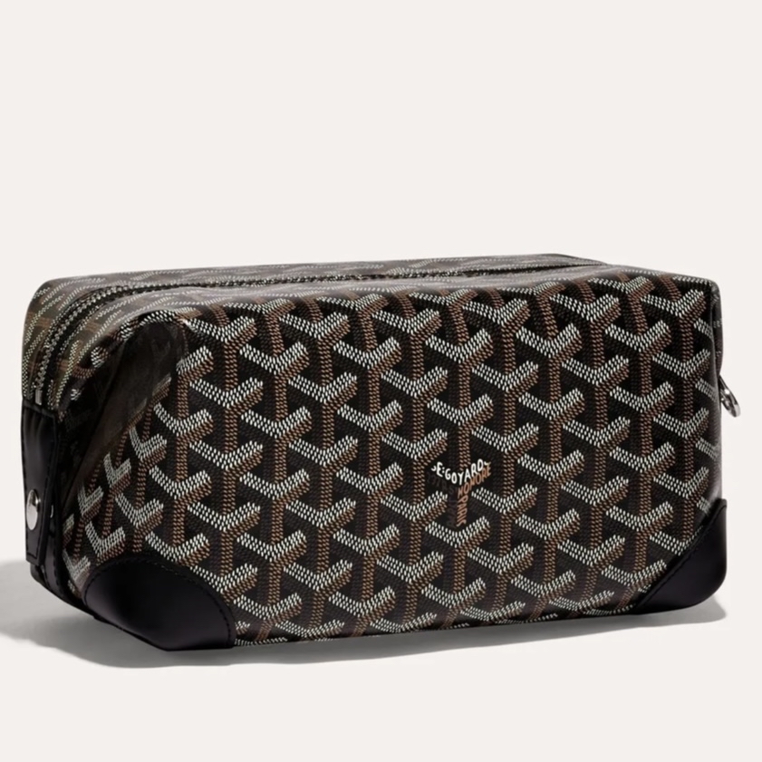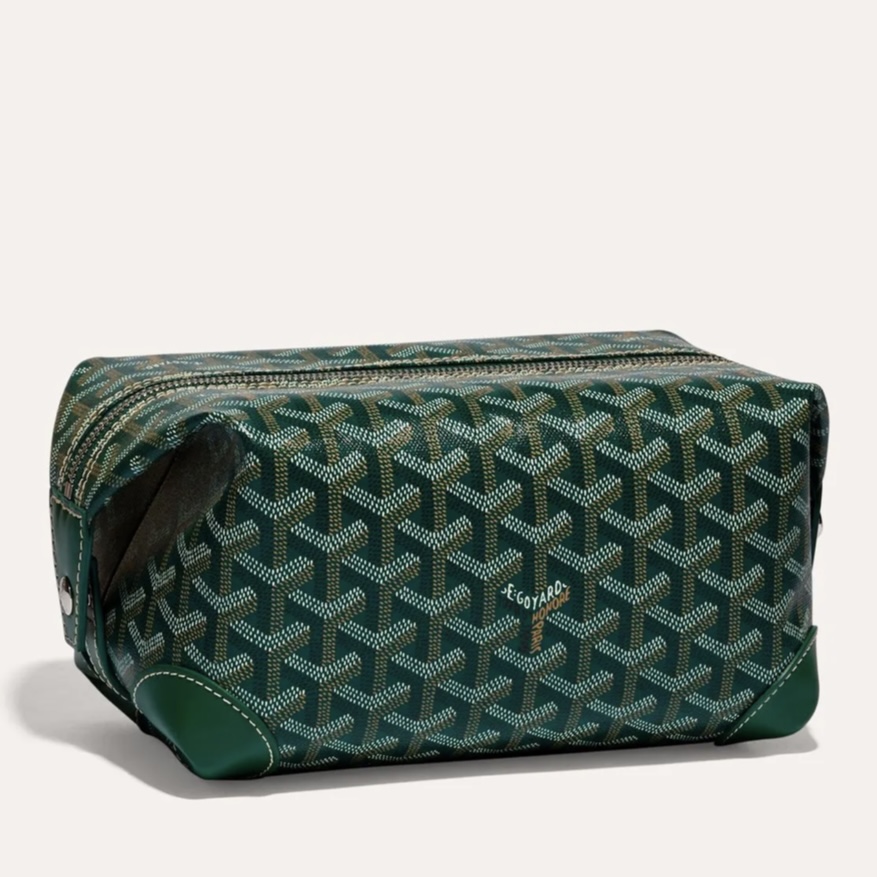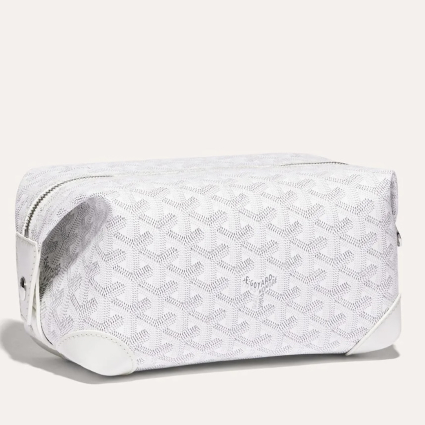 Goyard Bowling 25 Toiletry Bag: 你旅遊的最佳夥伴,時尚又實用! 想要擺脫沉悶的旅行盥洗包? Goyard Bowling 25 Toiletry Bag 絕對能讓你的旅途更加亮眼! 這款迷你版的經典 Bowling 包,不只外型可愛吸睛,更具備令人驚豔的收納能力,是時尚旅人的完美選擇。 尺寸:** 25 cm x 15 cm x 10 cm ( 實際尺寸可能略有差異 ),完美比例,兼顧容量與便攜性。
