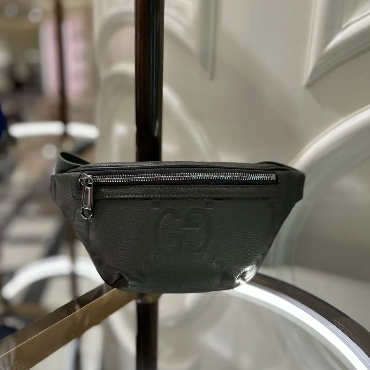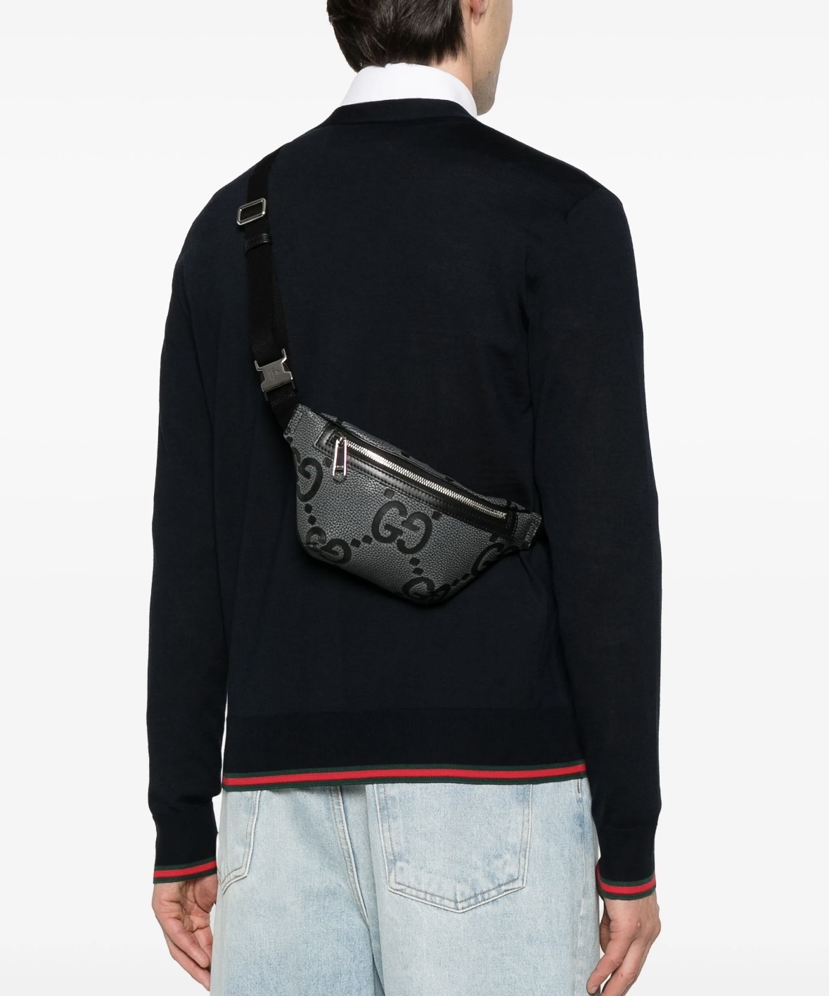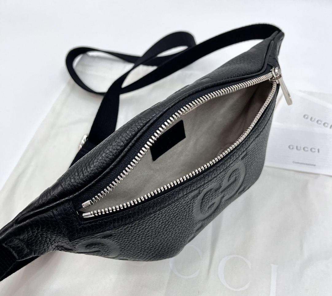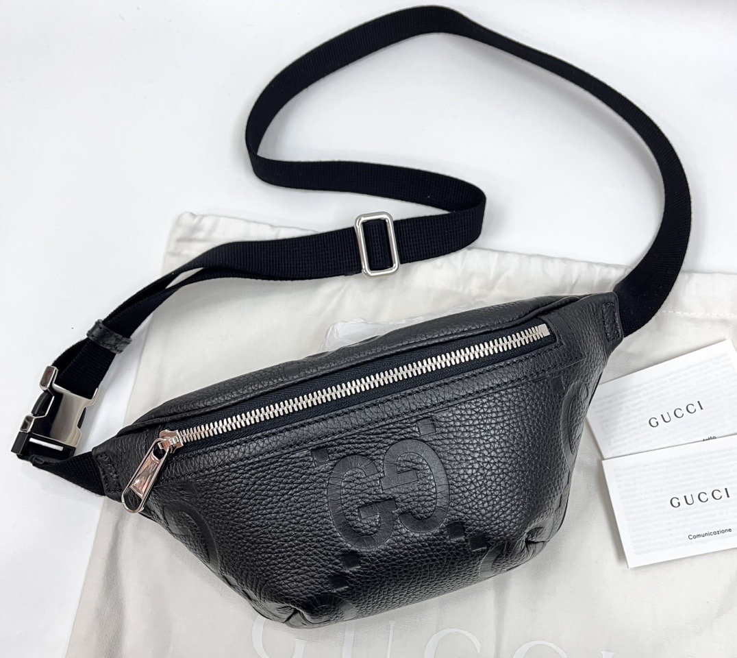 Gucci黑色牛皮腰包