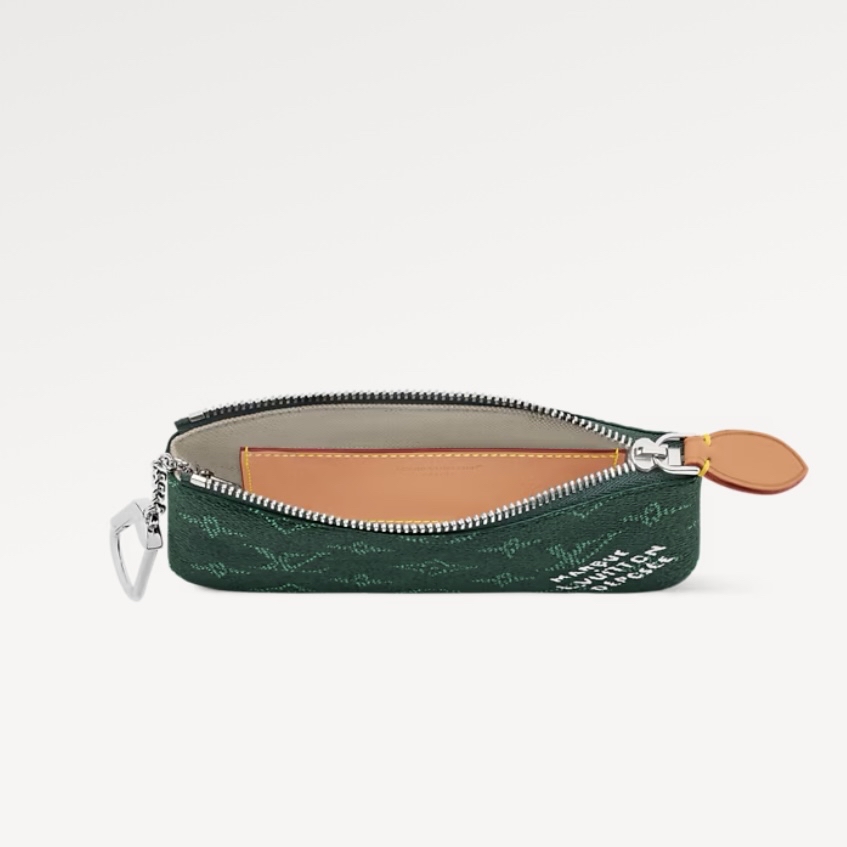 這款小號鎖匙零錢包配上今季的主打色調,為造型注入亮麗奪目的色彩。零錢包採用Monogram Heritage帆布製造,飾以銀色鏈條及鉤扣,可隨意掛上鎖匙。尺寸適合存放護照,並配備大型卡片夾層,是旅遊出行必備配飾。 15 x 9 x 1 (厘米) ((長度 x 高度 x 寬度) 綠色 塗層帆布 牛皮飾邊 紡織襯裡 銀色金屬件 拉鏈設計 1個大型拉鏈口袋 1個卡片套層 1個鎖匙扣 鏈帶配有鉤扣 可放置信用卡及帳單 此產品於法國、西班牙、意大利或美國製造。