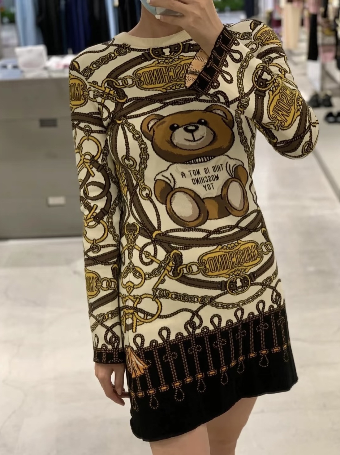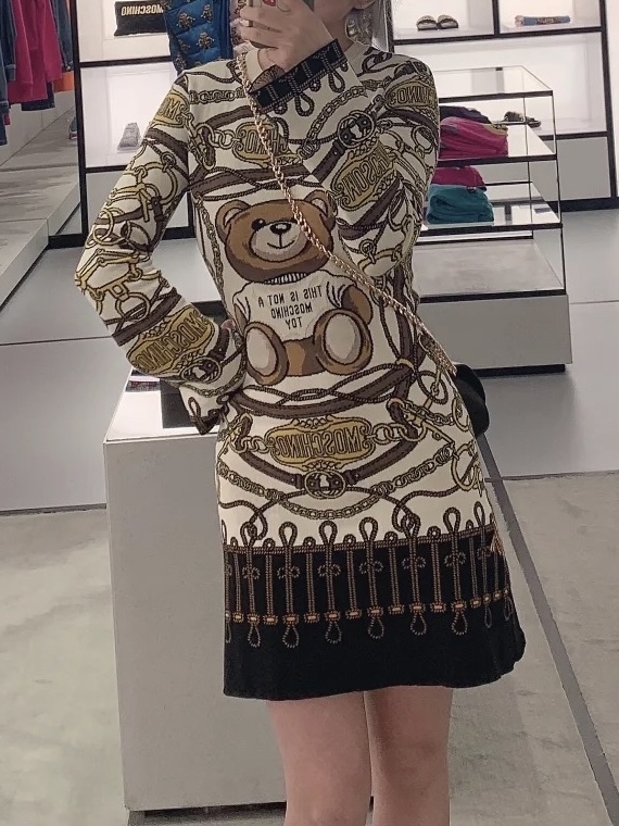 ## Moschino 絲帶熊針織連身裙: 經典童趣,優雅呈現 Moschino絲帶熊針織連身裙將品牌標誌性的玩味設計與高級針織工藝完美融合,為您的衣櫥注入一抹俏皮的時尚氣息。這款連身裙採用柔軟舒適的針織面料製成,賦予穿著者絕佳的穿著體驗,無論是日常休閒還是特殊場合,都能輕鬆駕馭。 無論是搭配簡約的平底鞋,打造輕鬆休閒的風格,還是配上高跟鞋,凸顯優雅氣質,Moschino 絲帶熊針織連身裙都能完美勝任。這款連身裙不僅是一件服裝,更是一種生活態度的展現,將童真與時尚巧妙結合,讓您在人群中脫穎而出。