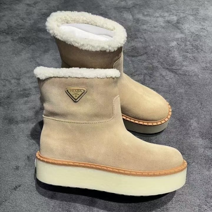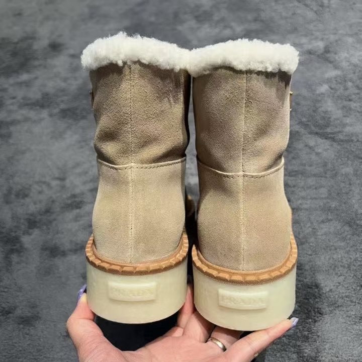 Prada絨面毛毛短靴