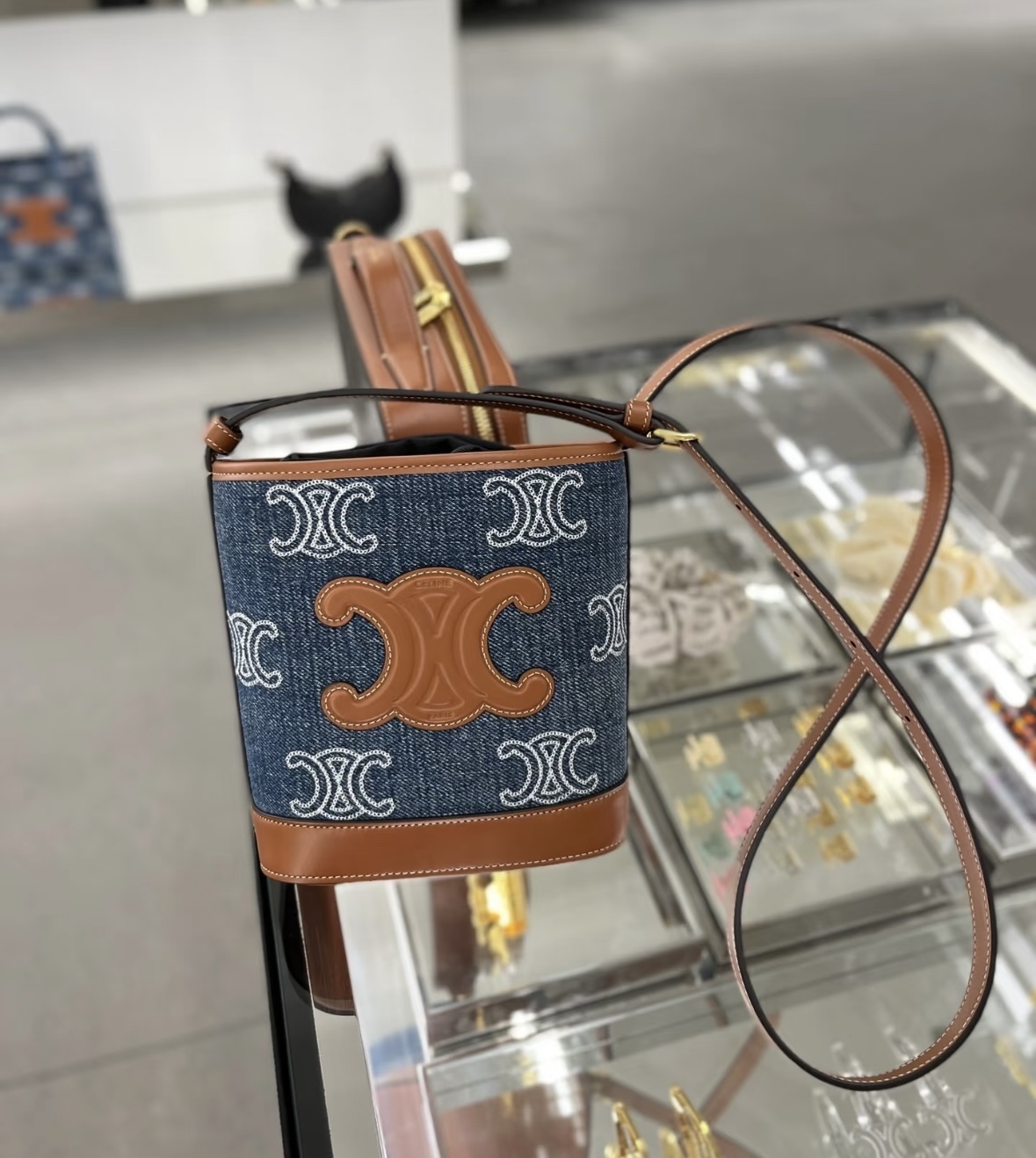 SMALL BUCKET IN TRIOMPHE CANVAS AND CALFSKIN